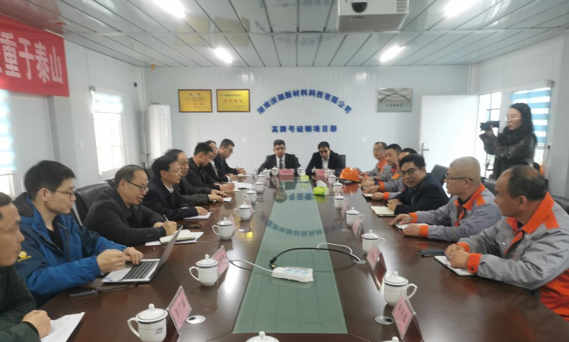“專家企業(yè)行”活動啟動儀式后,湖南人文科技學院副校長、教授陳志國,湖南人文科技學院材料與環(huán)境工程學院黨總支書記、副教授譚峰亮,湖南人文科技學院國際交流處處長、副教授黃敏,湖南人文科技學院能源與機電工程學院副院長、教授彭廣威等八位專家教授一行前往湖南浙湘新材料科技有限公司,對湖南浙湘新材料科技有限公司主導產(chǎn)品高牌號無取向硅鋼、高磁感取無向硅鋼、新能源汽車無取向硅鋼等高端精品鋼材生產(chǎn)技術(shù)進行全方位、深層次的了解,“問診把脈”。