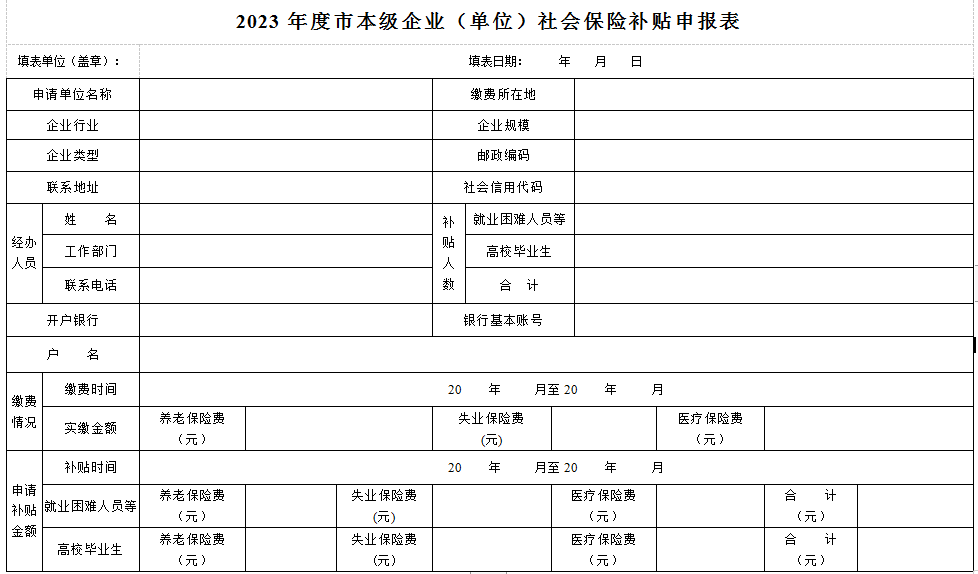 (四)《2023年度市本級(jí)企業(yè)(單位)社會(huì)保險(xiǎn)補(bǔ)貼申報(bào)表》(見附件);
