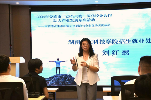 為進(jìn)一步深化校企合作,助力產(chǎn)業(yè)發(fā)展,持續(xù)推動(dòng)“益企興婁 活動(dòng),20247月,婁底市人力資源和社會(huì)保障局與湖南人文科 技學(xué)院聯(lián)合開辦了“婁底市首期求職能力實(shí)訓(xùn)營(yíng)”。為切實(shí)提高實(shí)訓(xùn)營(yíng)學(xué)員對(duì)行業(yè)企業(yè)的認(rèn)知,讓學(xué)員親身感受婁底企業(yè)的發(fā)展?fàn)?/span>況,提高學(xué)員的就業(yè)實(shí)踐能力,202487 日,由婁底市就業(yè)服務(wù)中心、湖南人文科技學(xué)院招生就業(yè)處、婁底市企業(yè)聯(lián)合會(huì)、婁底市企業(yè)家協(xié)會(huì)聯(lián)合主辦,婁底市節(jié)能環(huán)保產(chǎn)業(yè)促進(jìn)中心等企業(yè)承辦,在婁星產(chǎn)業(yè)開發(fā)區(qū)產(chǎn)學(xué)研中心舉辦“2024年婁底市高校畢業(yè) 生求職能力實(shí)訓(xùn)營(yíng)與企業(yè)現(xiàn)場(chǎng)交流活動(dòng)”。湖南人文科技學(xué)院招 生就業(yè)處處長(zhǎng)劉紅燃,婁底市就業(yè)服務(wù)中心城鄉(xiāng)就業(yè)服務(wù)部部長(zhǎng)聶瑞成帶隊(duì)參加。