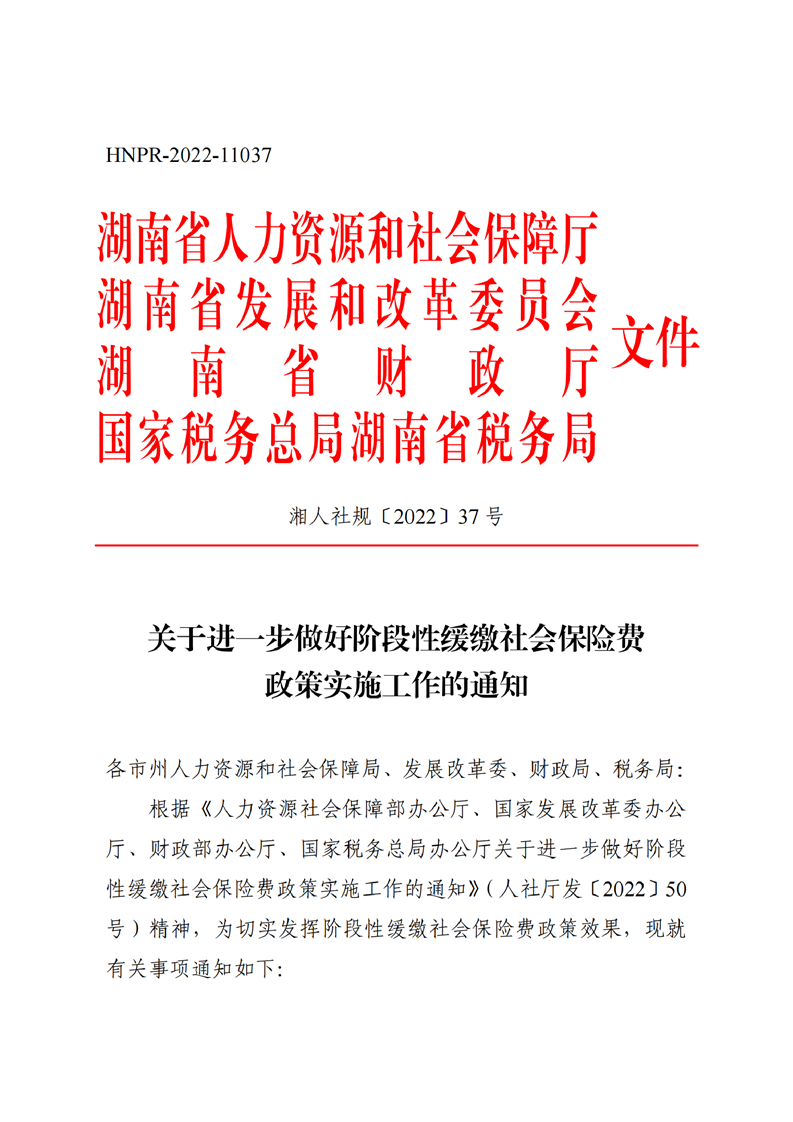 湖南印發(fā)《關(guān)于進(jìn)一步做好階段性緩繳社會保險(xiǎn)費(fèi)政策實(shí)施工作有關(guān)問題的通知》