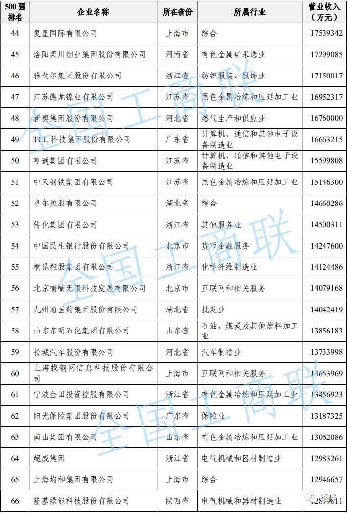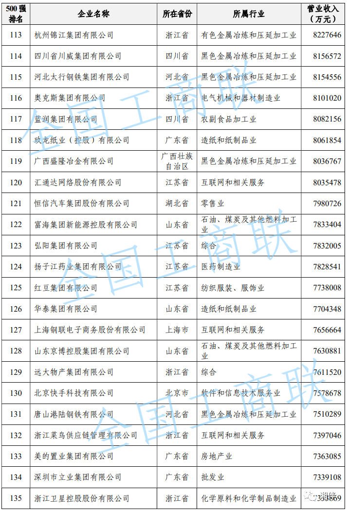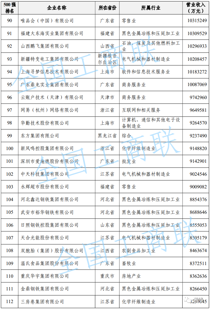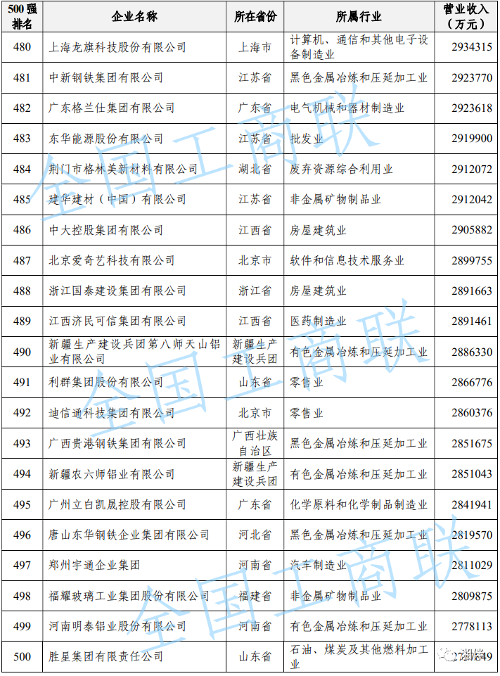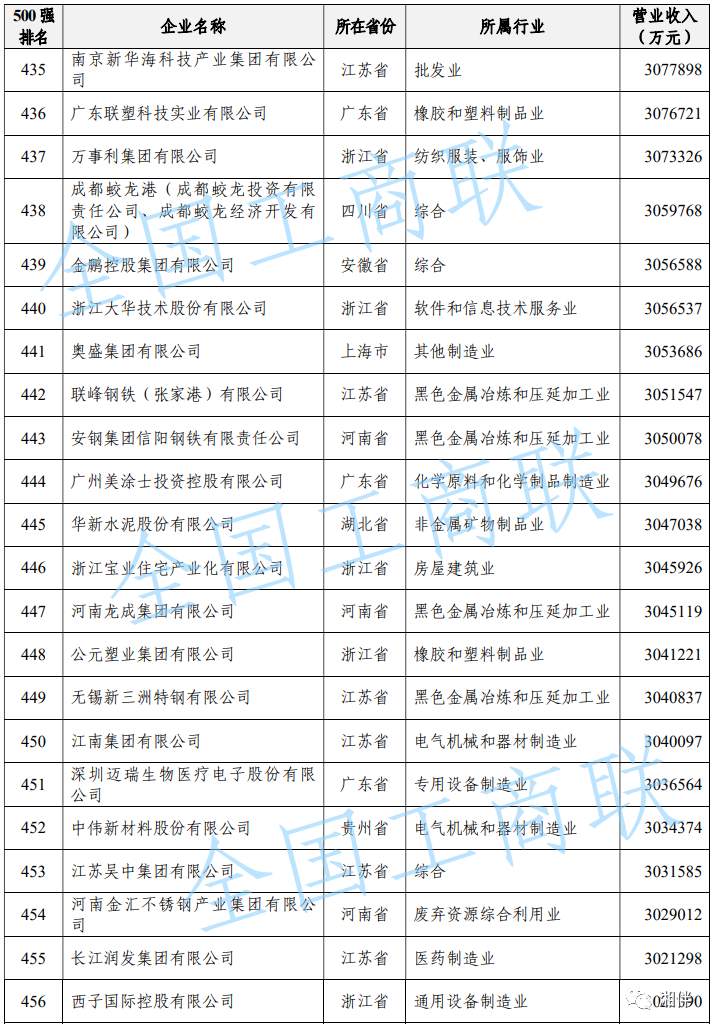 2023中國民營(yíng)企業(yè)500強(qiáng)榜單