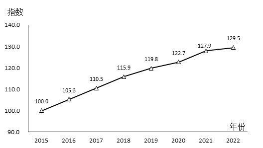 從測(cè)算結(jié)果看,以2015年為基期,2022年長(zhǎng)三角區(qū)域發(fā)展指數(shù)為129.5,比上年提高1.6,與2015年相比,年均提高4.2。六個(gè)分領(lǐng)域指數(shù)均有所上升。其中,創(chuàng)新共建、綠色共保分項(xiàng)指數(shù)上升最快,年均提高超7.0;示范引領(lǐng)、協(xié)調(diào)共進(jìn)和民生共享分項(xiàng)指數(shù)平穩(wěn)提升,年均提高約4.0;開(kāi)放共贏分項(xiàng)指數(shù)在波動(dòng)中提高,年均提高1.0