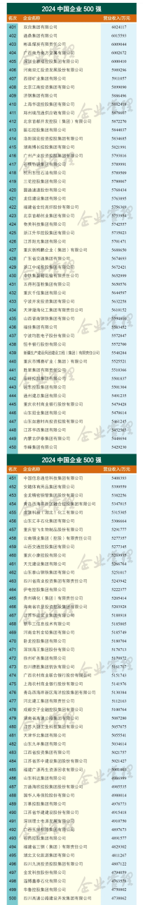 重磅發(fā)布 | 2024中國企業(yè)500強(qiáng)名單