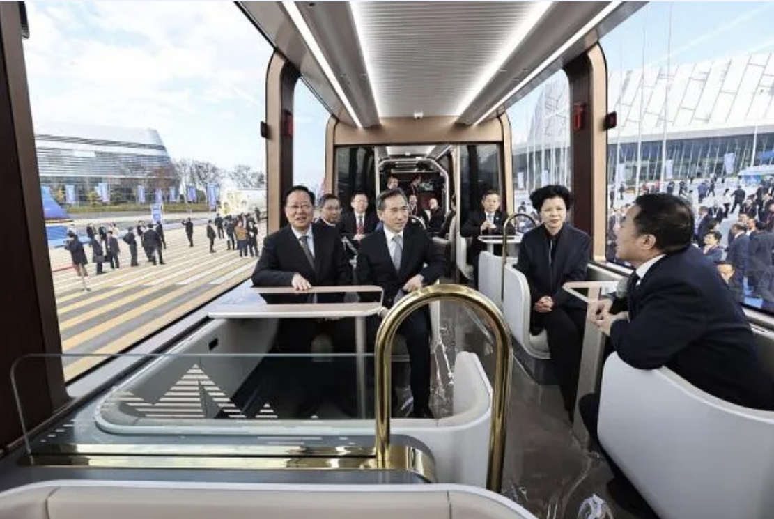 軌道交通博覽會(huì)期間,省長(zhǎng)毛偉明,中國國際貿(mào)易促進(jìn)會(huì)會(huì)長(zhǎng)、黨組書記任鴻斌一行試乘中車新研發(fā)的雪山旅列。